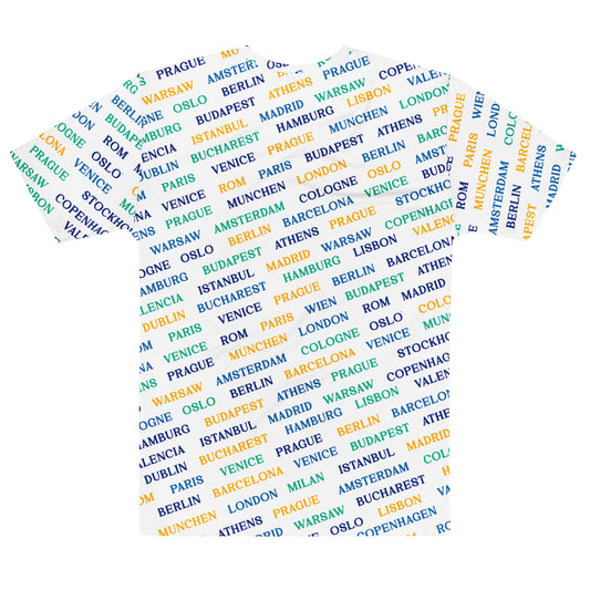 Retro 'Cities Of Europe' Tourist Travel All-Over Print Souvenir T-Shirt